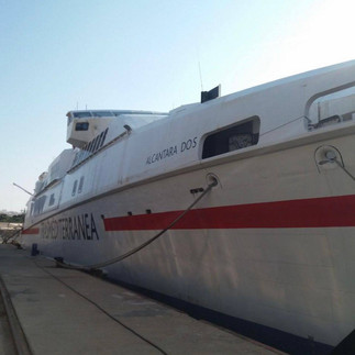 Το πλοίο «ΝΗΣΟΣ» (IMO 9107203), πρώην ALCANTARA DOS, είναι ένα ταχύπλοο επιβατηγό/οχηματαγωγό καταμαράν με σημαντικά επιχειρησιακά χαρακτηριστικά: μήκος 78,6 μέτρα, πλάτος 23 μέτρα, ολική χωρητικότητα 4.859 GT, δυνατότητα μεταφοράς περίπου 550 επιβατών και 150 οχημάτων, καθώς και υψηλή ταχύτητα που προσεγγίζει τους 32 κόμβους. Πρόκειται για μια ναυτική μονάδα με ιδιαίτερη αξία ως πλατφόρμα ταχείας μεταφοράς και υποστήριξης, εφόσον φυσικά κριθεί κατάλληλη για τις ανάγκες της αποστολής που θα της ανατεθεί.